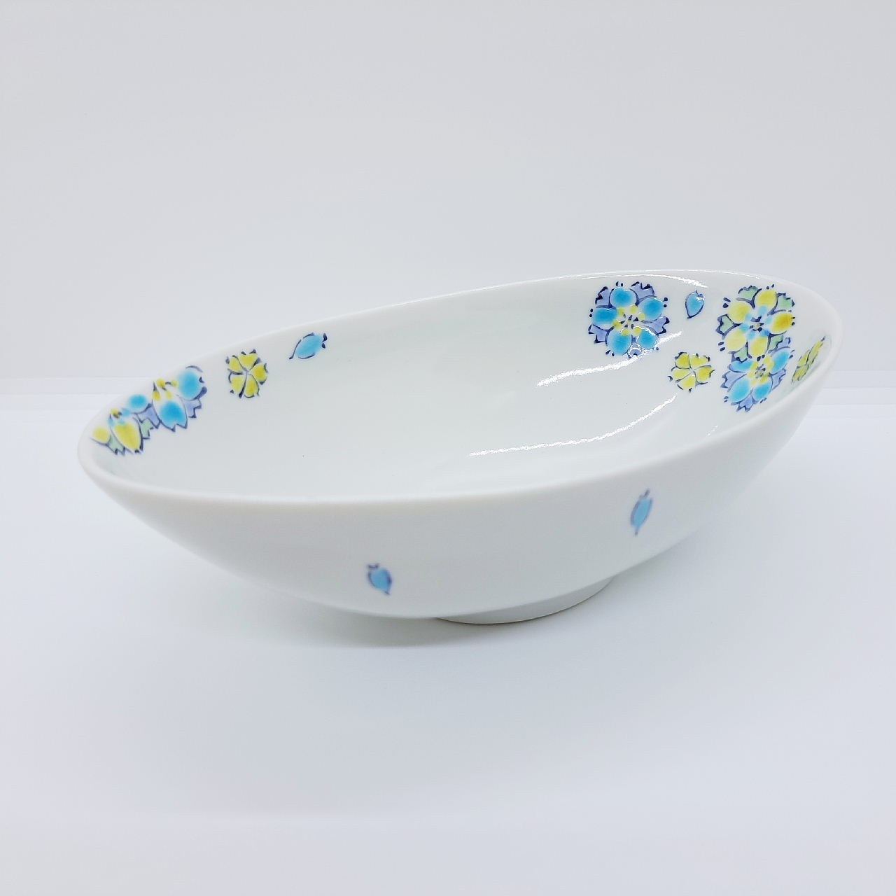九谷焼楕円鉢/はなの詩ブルー