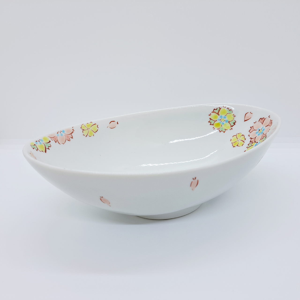 九谷焼楕円鉢/はなの詩ピンク
