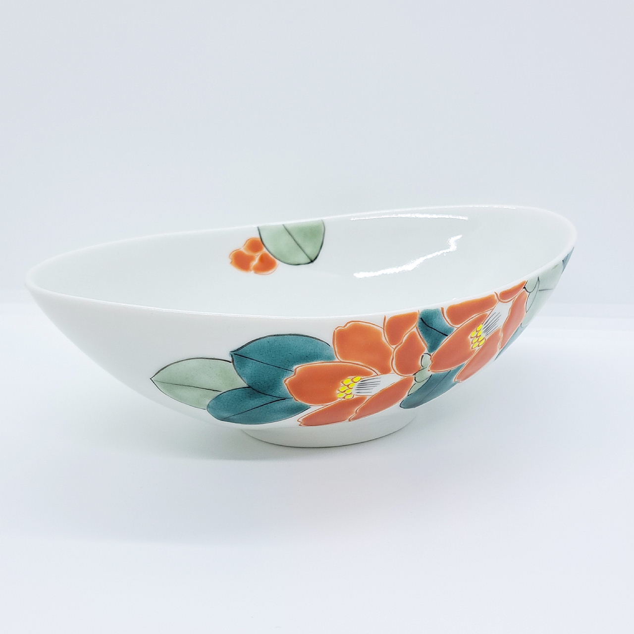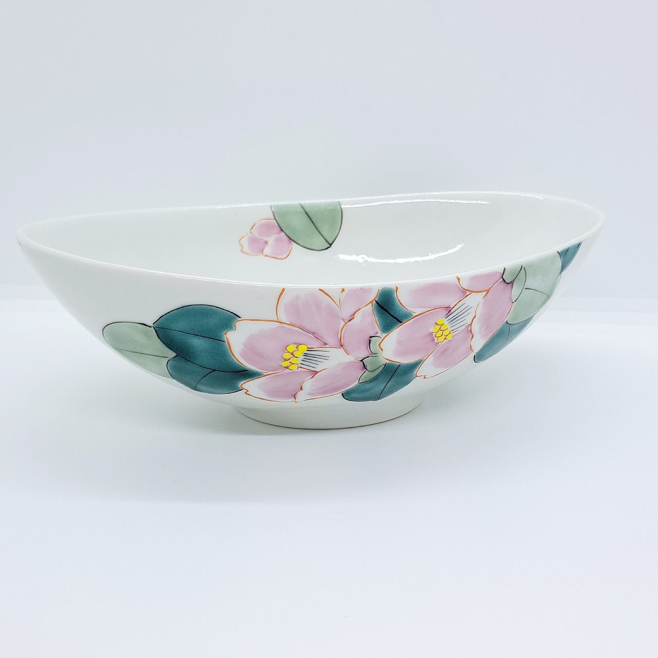九谷焼楕円鉢/白椿