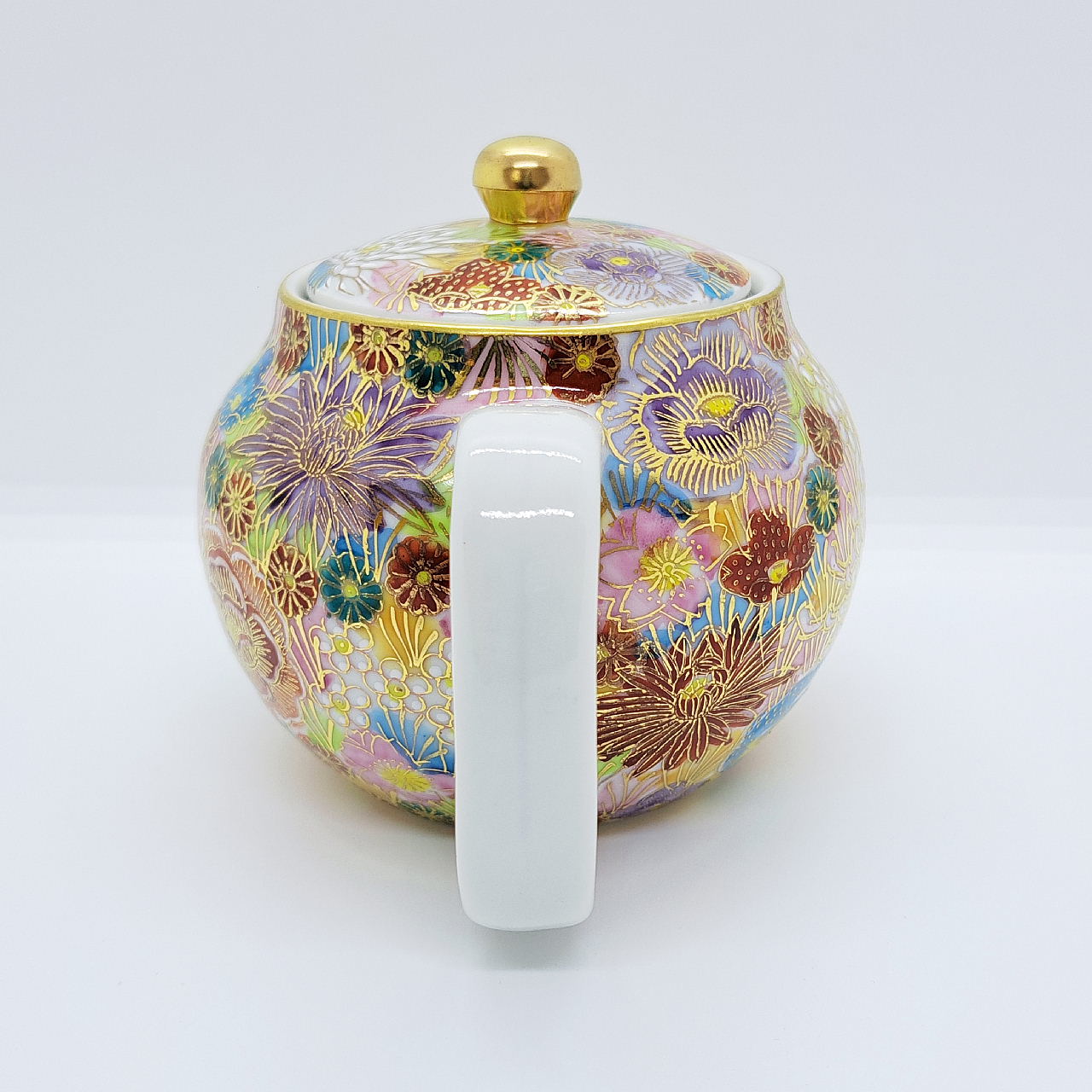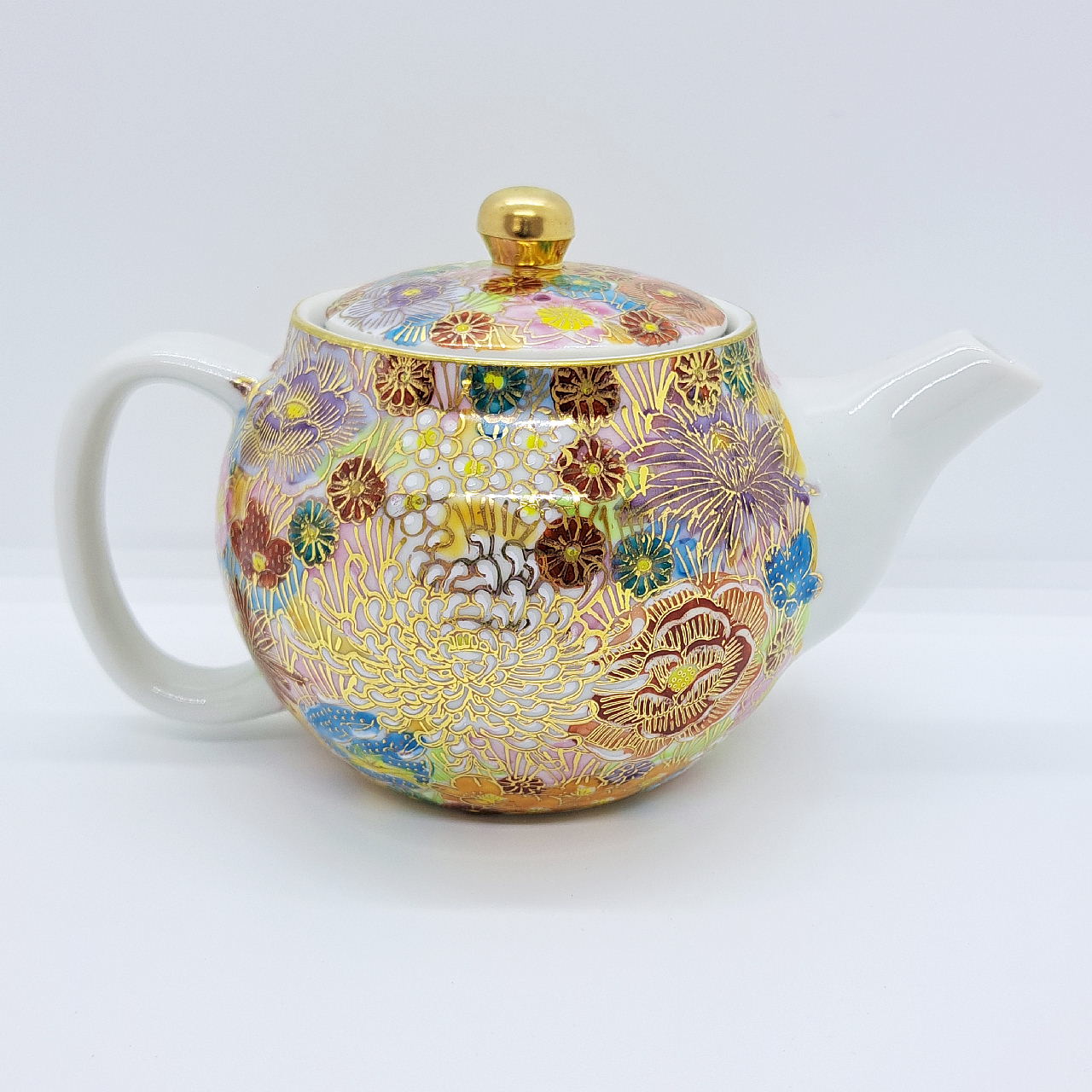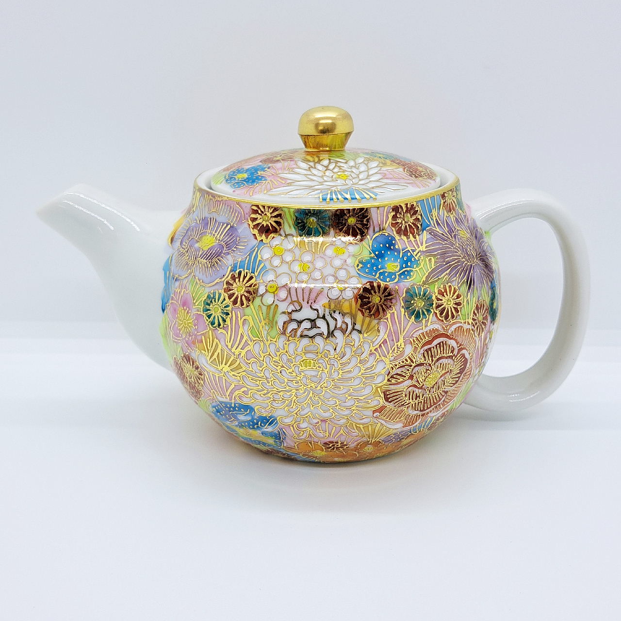 大小様々な色とりどりの花柄を敷き詰めた華やかな絵柄と金が施されているので高級感があります。