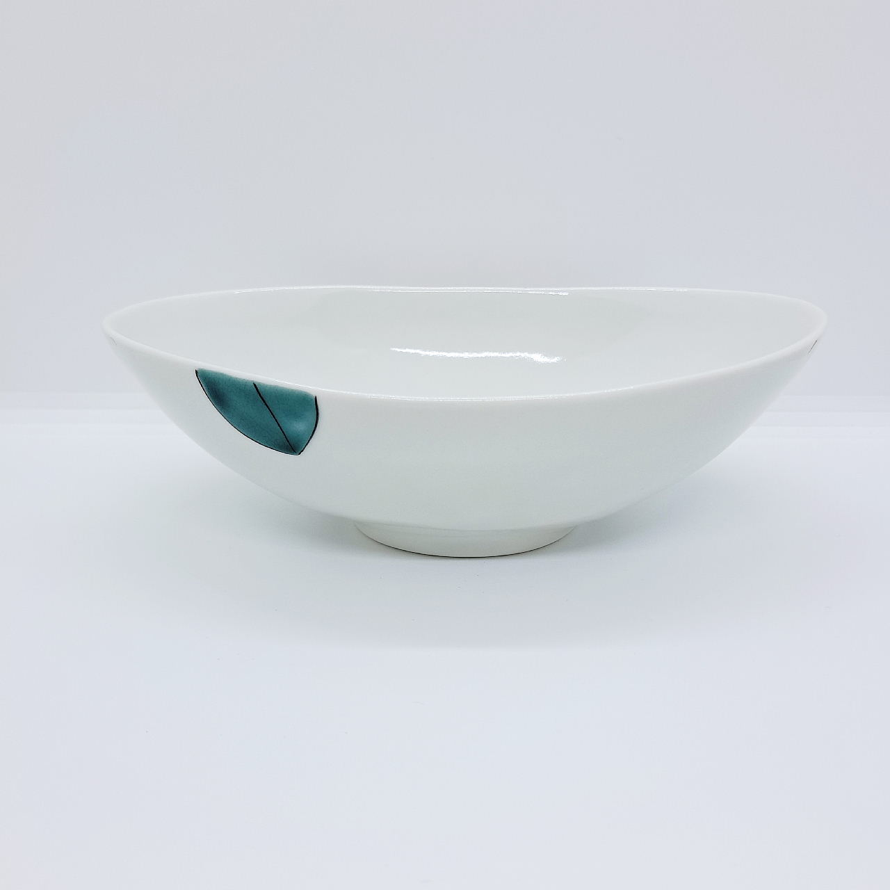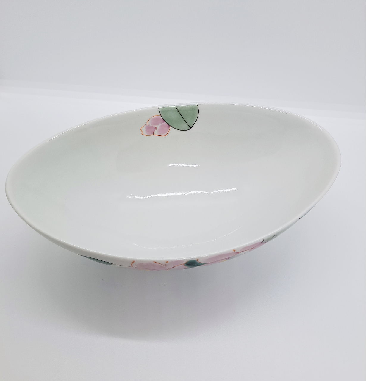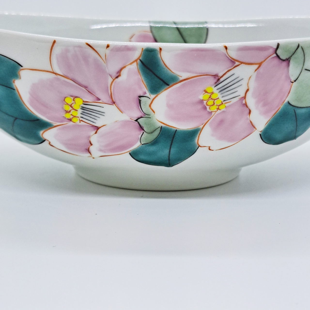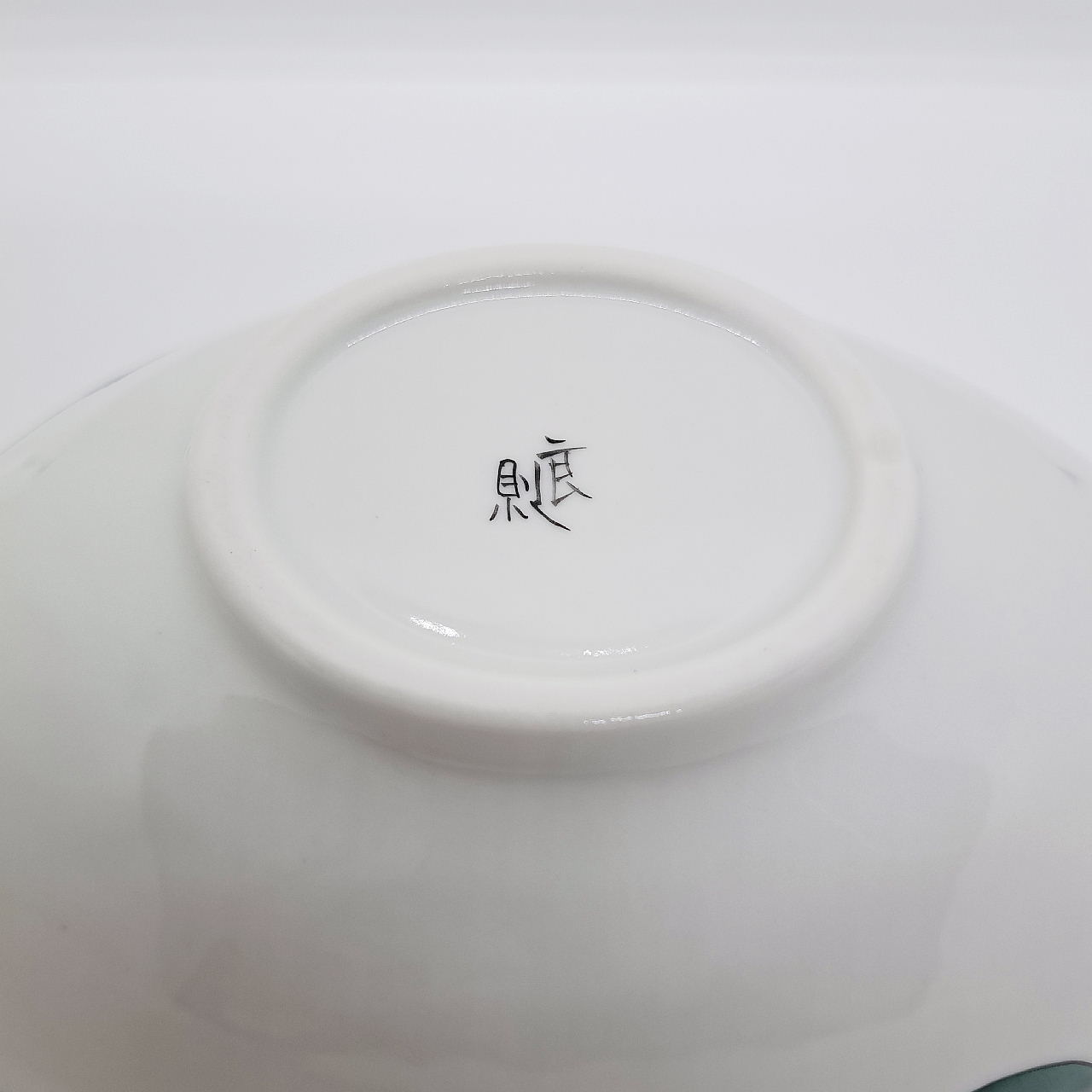 九谷焼の特徴は、「呉須(ごす)」とよばれる藍青色で線描きし、「五彩」とよばれる、赤・黄・緑・紫・紺青の5色での絵の具を厚く盛り上げて塗る技法で