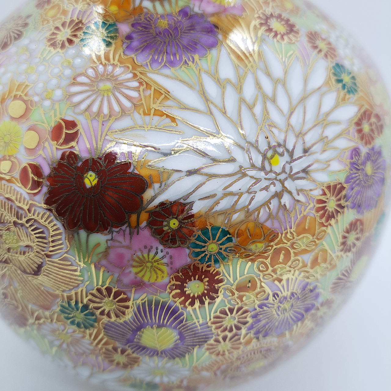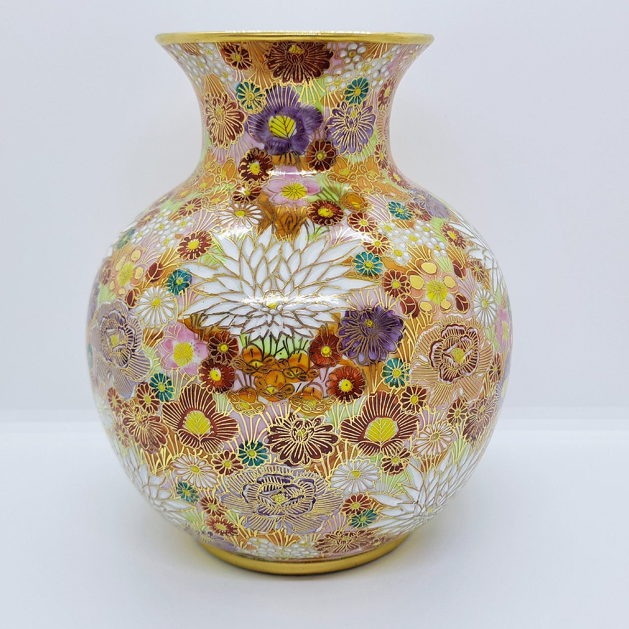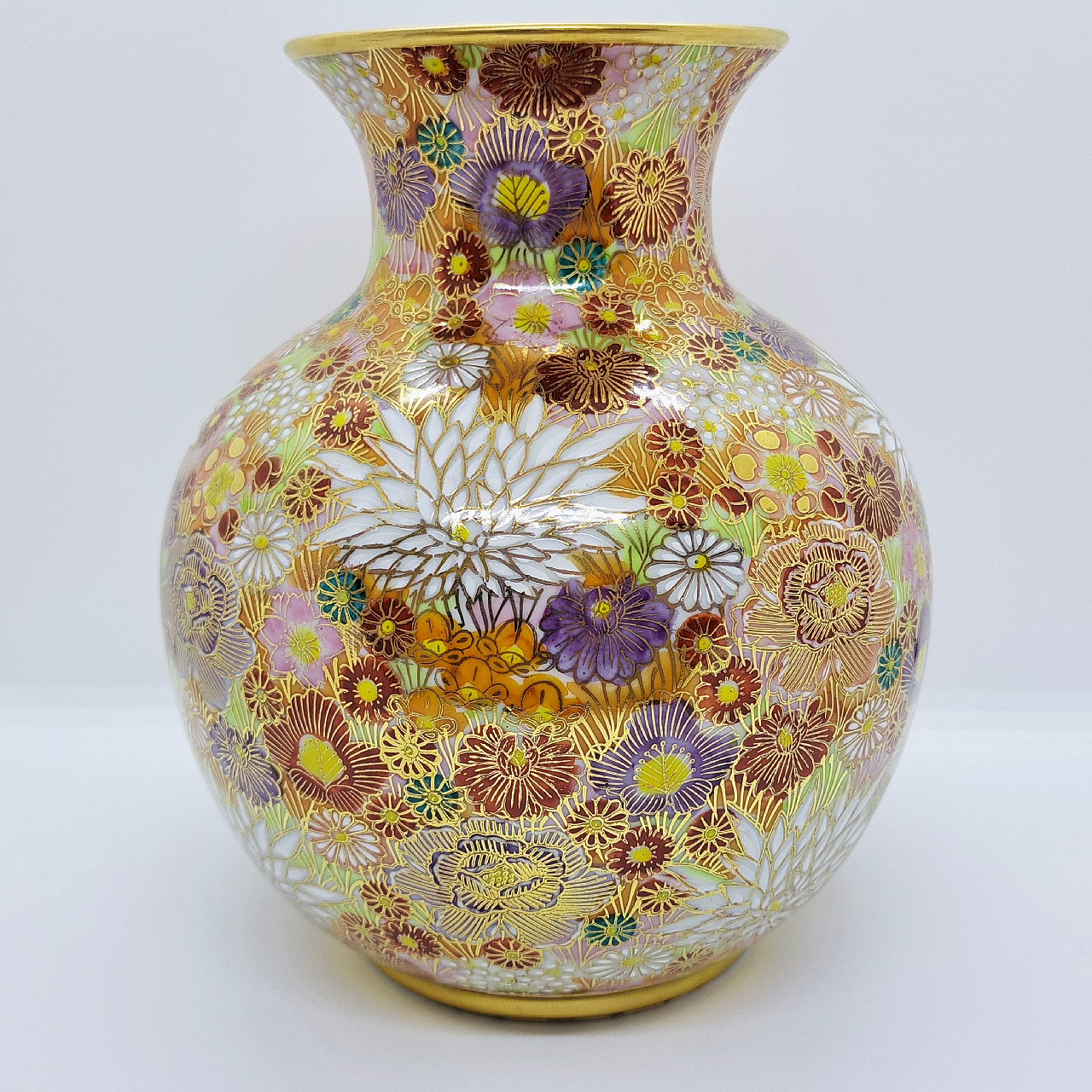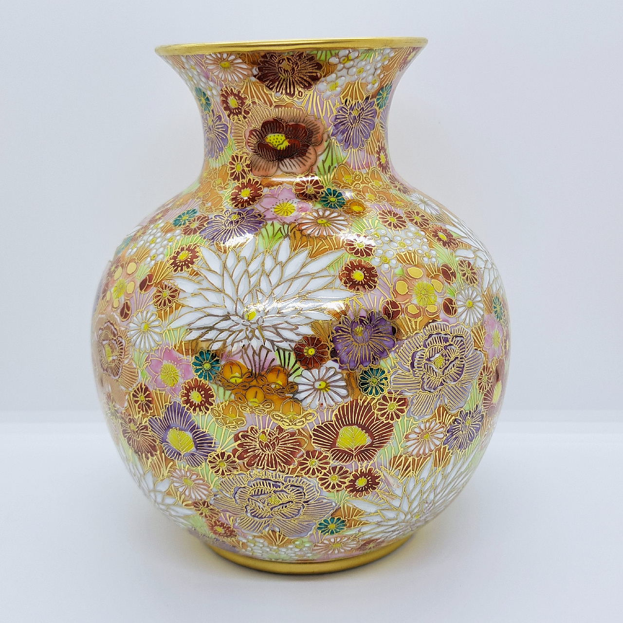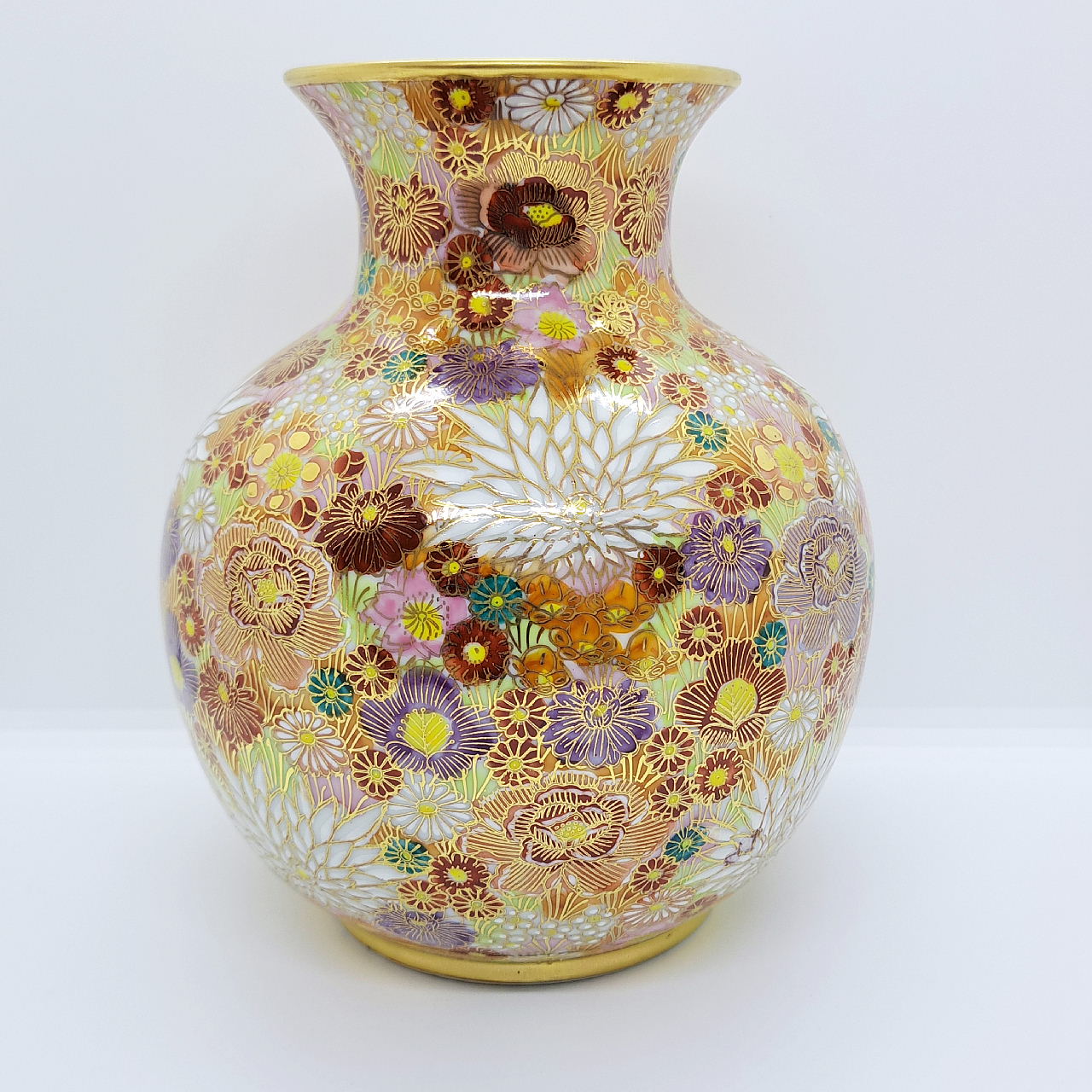 大小様々な色とりどりの花柄を敷き詰めた華やかな絵柄と金が施されているので高級感があります。