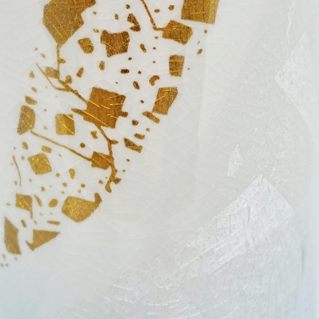 銀箔を貼り付けた上に透明釉や五彩の釉薬を塗り焼き上げた技法。銀箔が剥がれない上に錆びないとゆう特性を持っています。