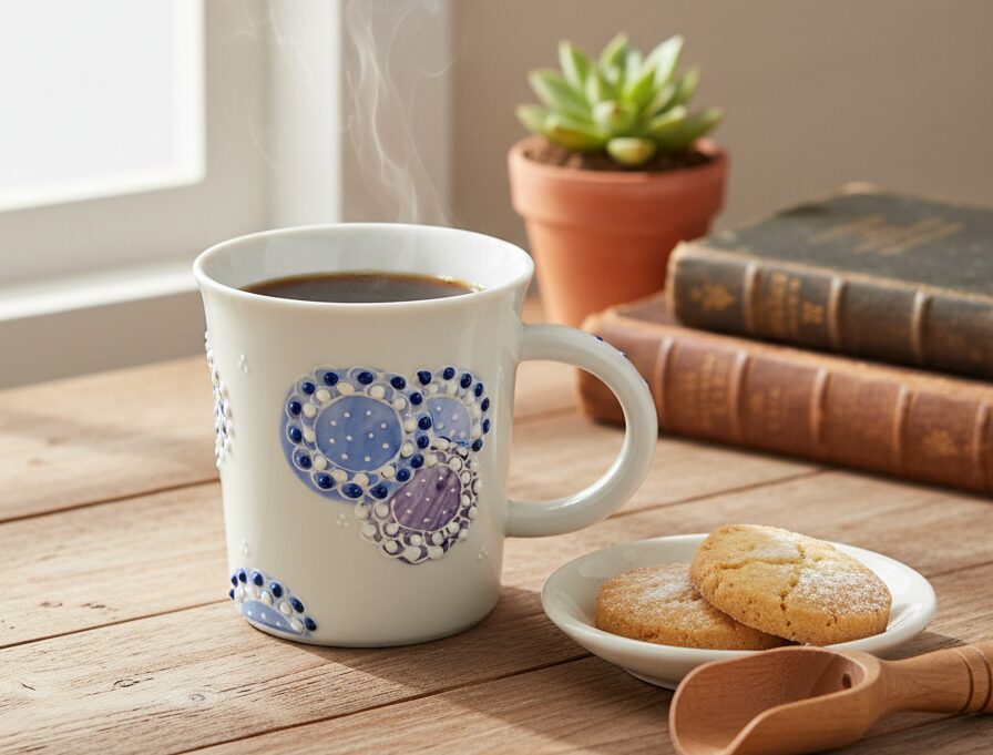 毎日のコーヒータイム、お気に入りの「器」があるだけで心がふんわり軽くなりませんか? 今回は、石川県の伝統工芸**「九谷焼」の中でも、思わず触れたくなるような立体感が魅力の「いっちん技法」**を施したマグカップをご紹介します。